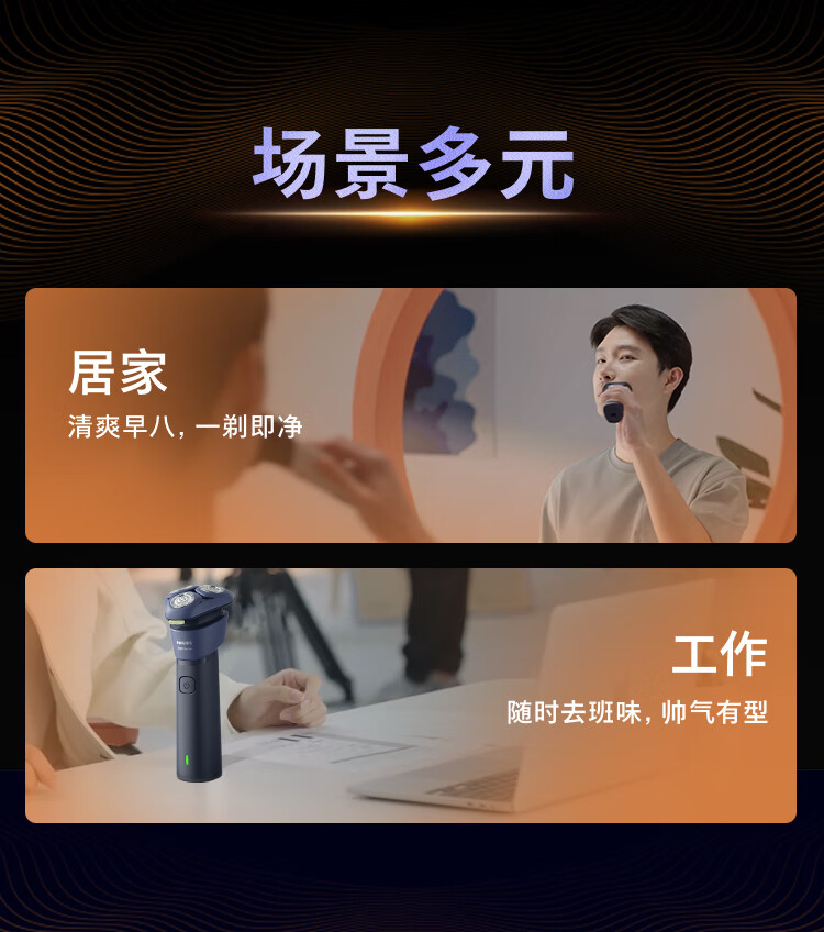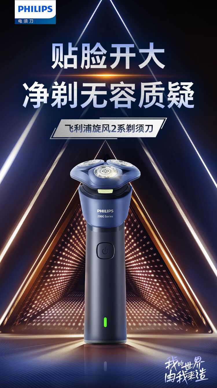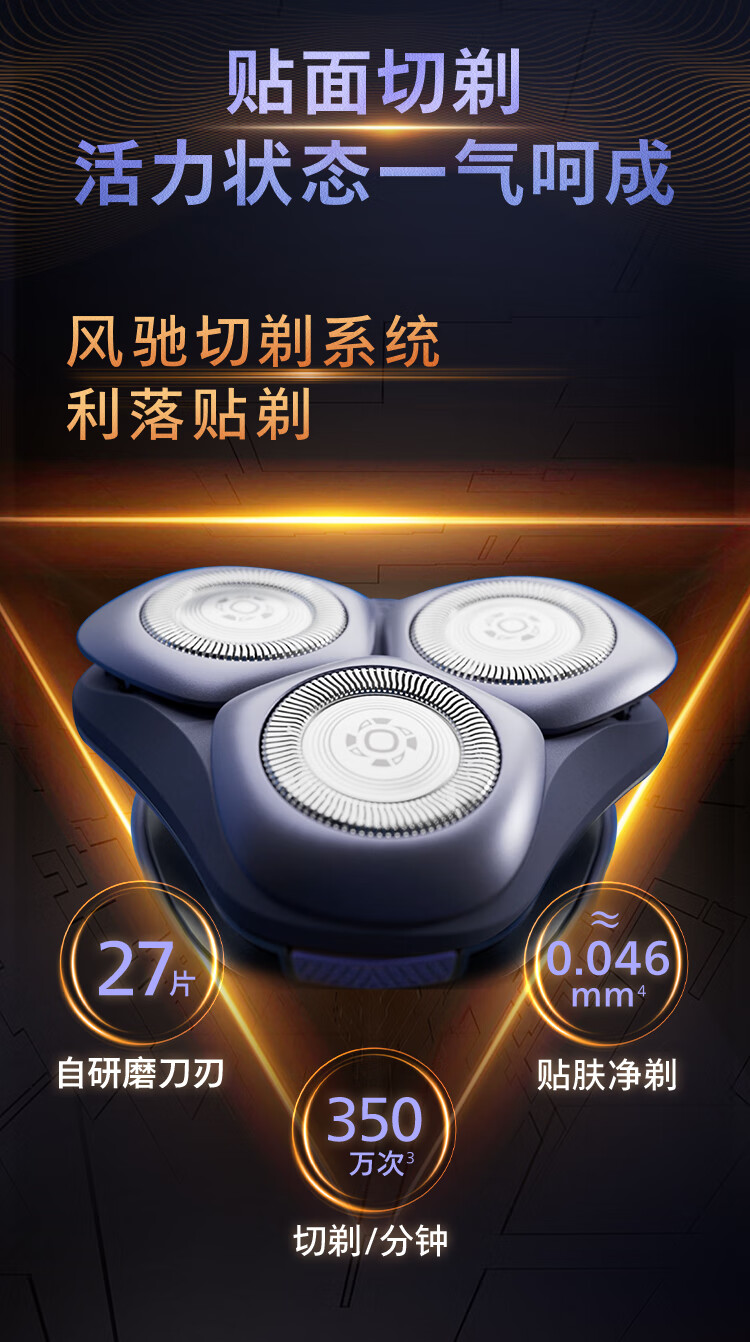 (巨邦佑)BJ+飞利浦 剃须刀 S288502 旋转式电动不锈钢三刀头全身水洗风驰切剃利落贴剃