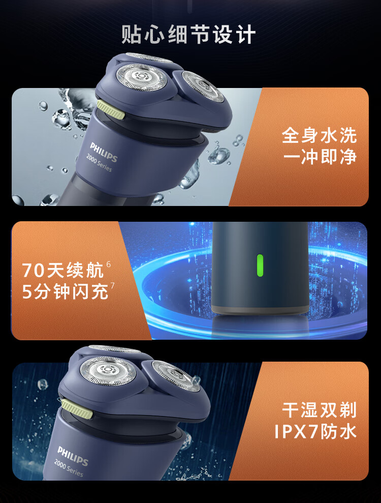 商品名称:(巨邦佑)BJ+飞利浦 剃须刀 S288502 旋转式电动不锈钢三刀头全身水洗风驰切剃利落贴剃