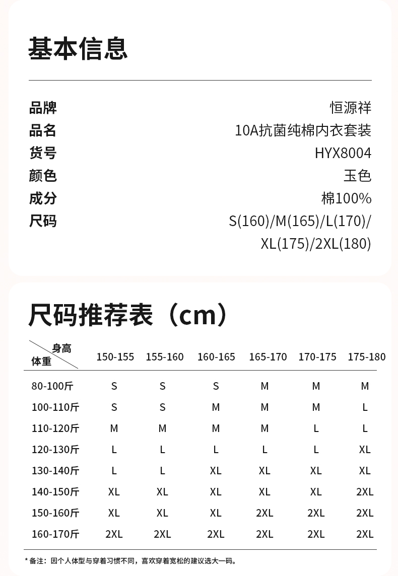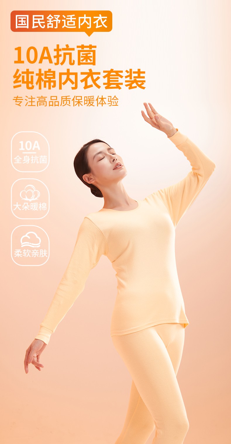 商品名称:(世星阳光)+恒源祥 10A抗菌纯棉内衣套装 HYX8004 规格:160165170175180 女款 颜色:玉色 下单备注尺码 保暖 抗菌