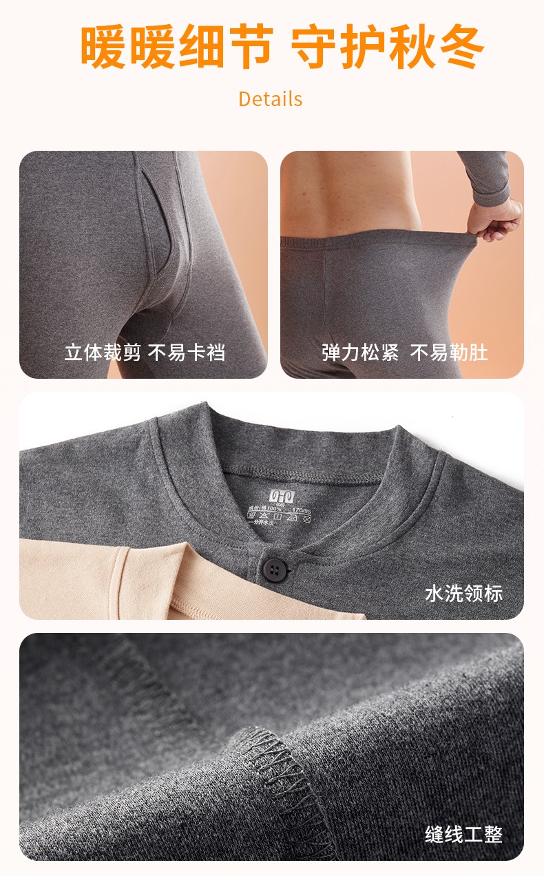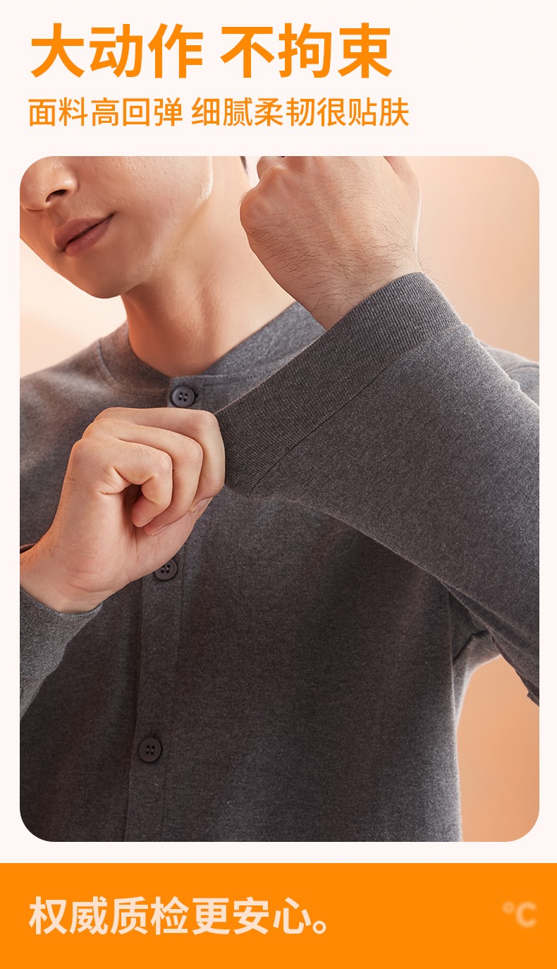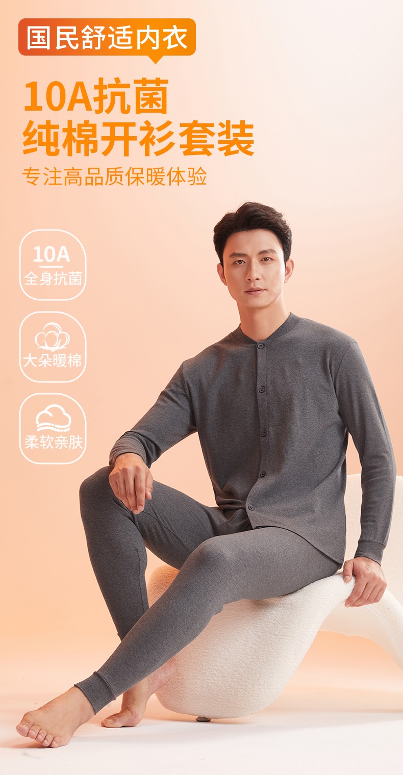 (世星阳光)+恒源祥 10A抗菌纯棉开衫套装 HYX8015 规格 170 175 180 185 190 男款 颜色 深灰 下单备注尺码 保暖 抗菌亲肤