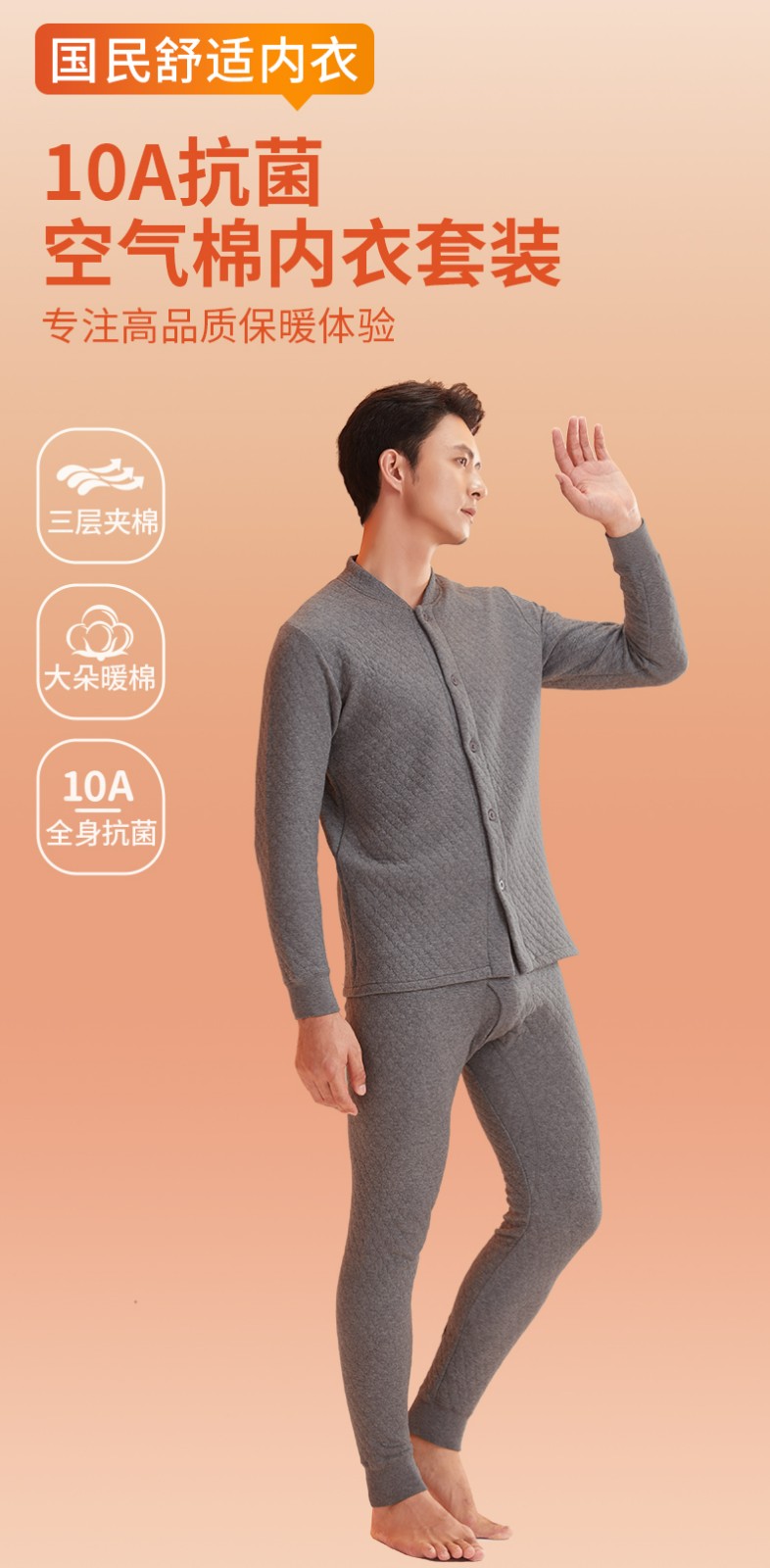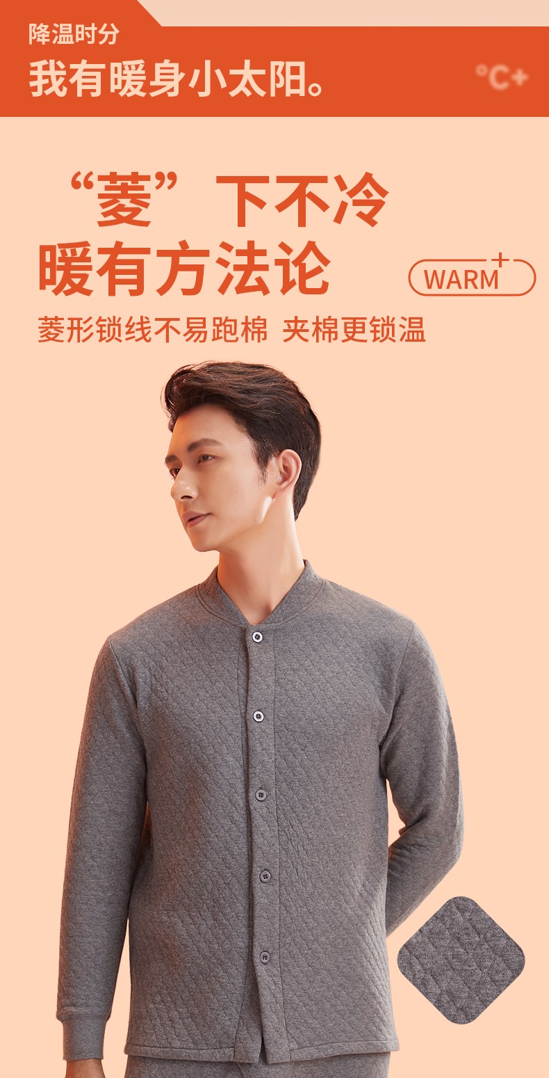 商品名称:(世星阳光)+恒源祥 10A抗菌空气棉内衣套装 HYX1107 规格170 175 180 185190 男款颜色深灰 下单备注尺码 抗菌保暖亲肤