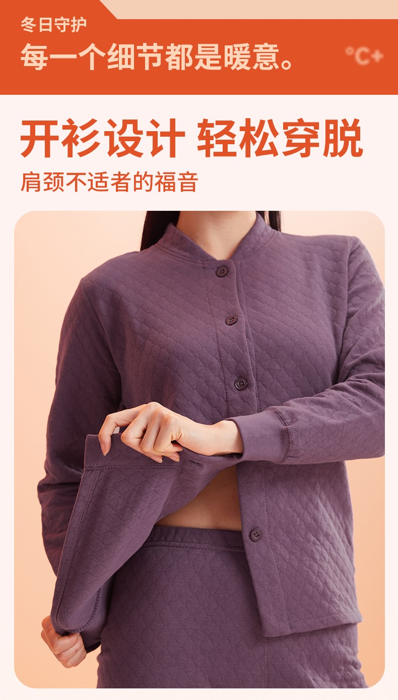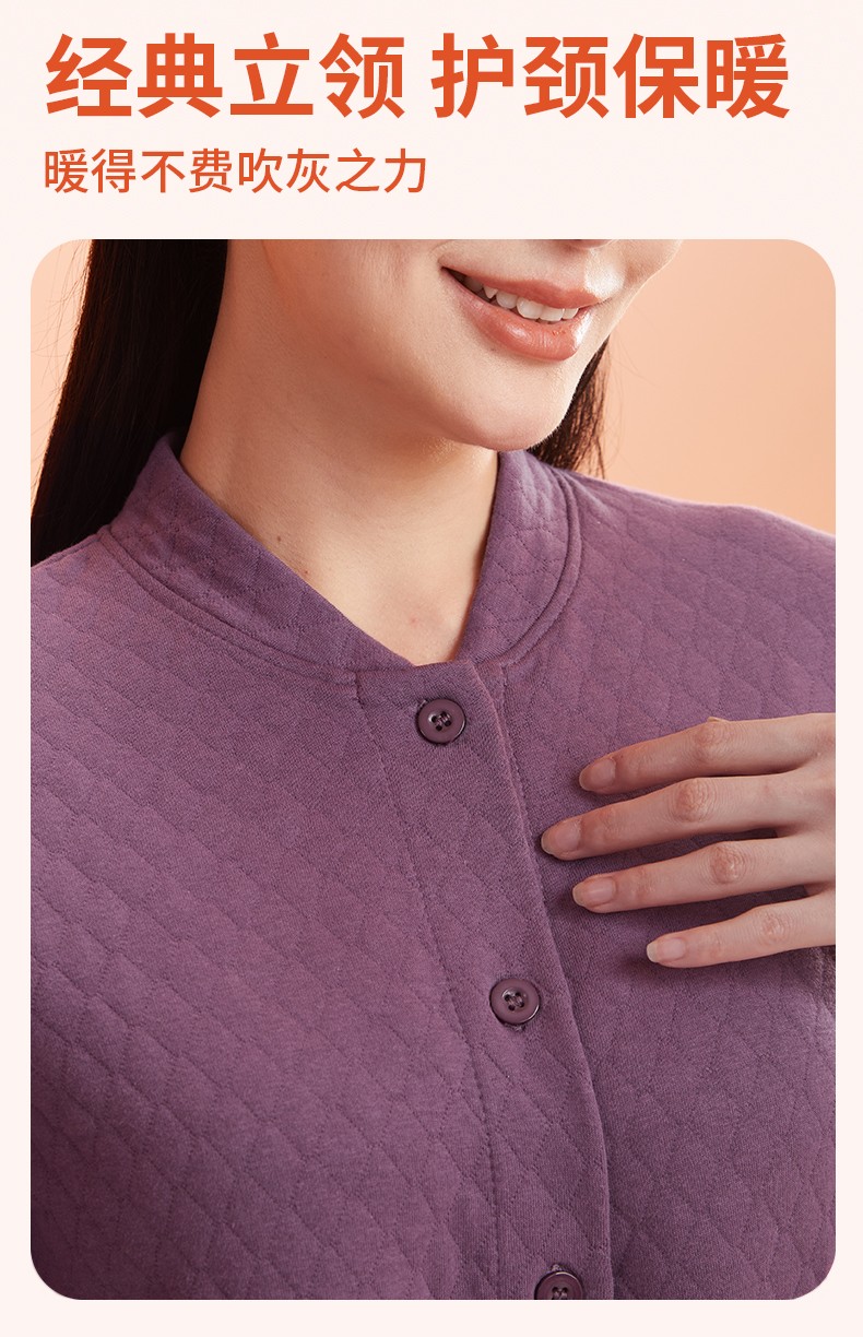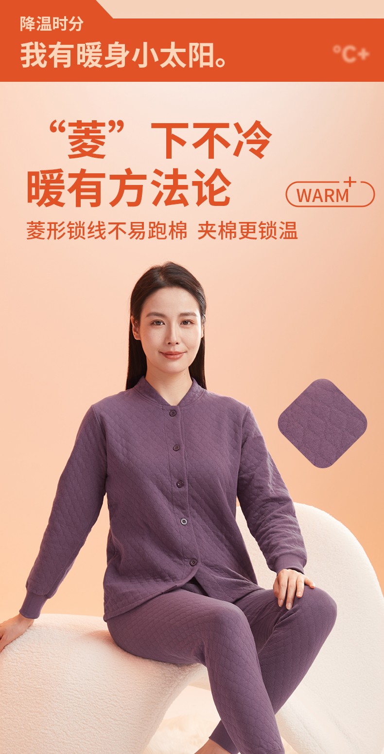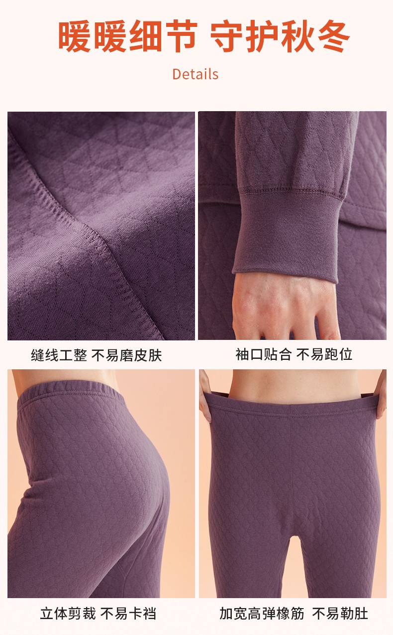 商品名称:(世星阳光)+恒源祥 10A抗菌空气棉内衣套装 HYX1108 规格 165 170 175 180 185 190 女款颜色 香芋紫 下单备注尺码 抗菌保暖 菱形锁线不易跑棉 夹棉更锁温