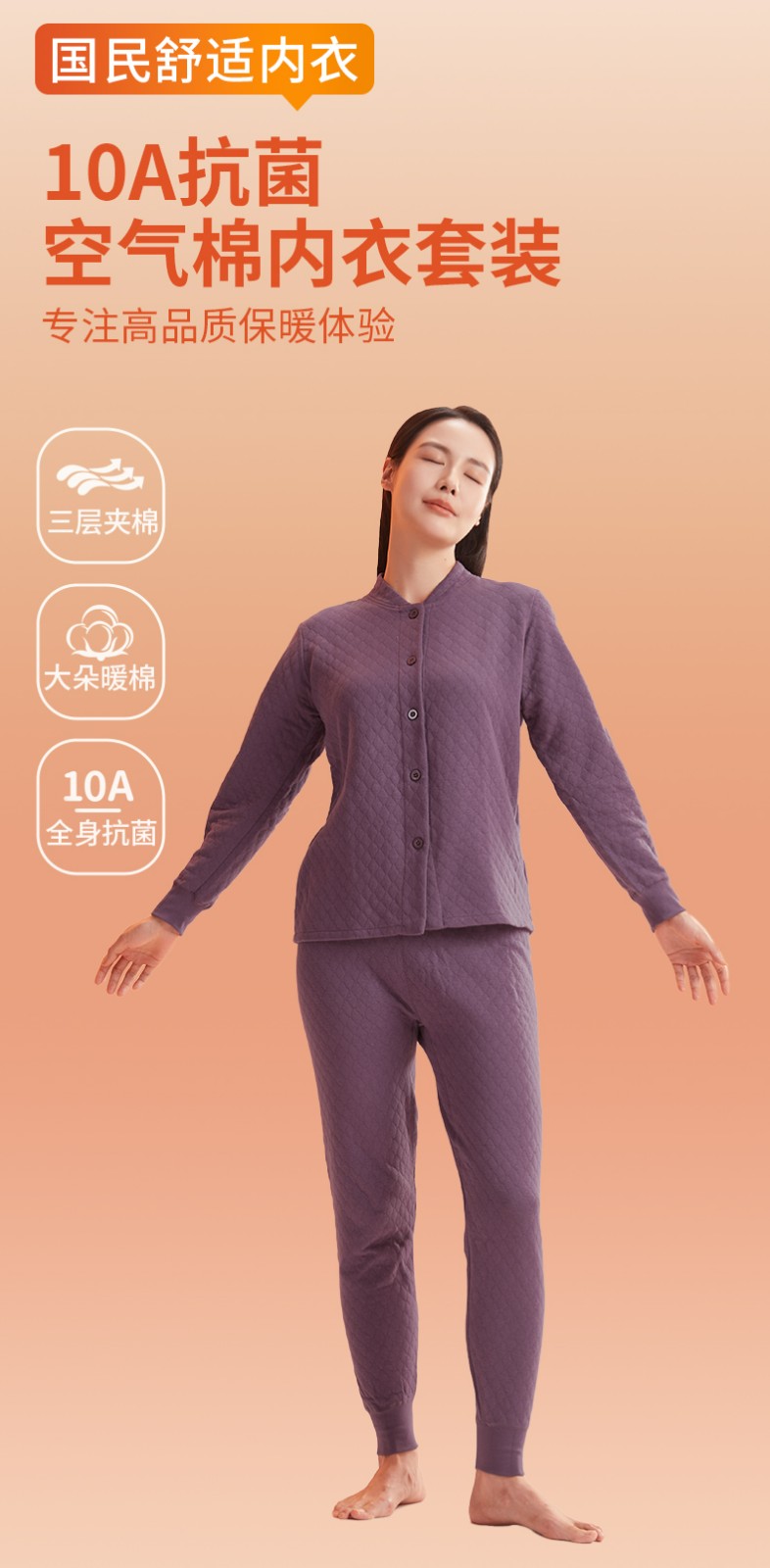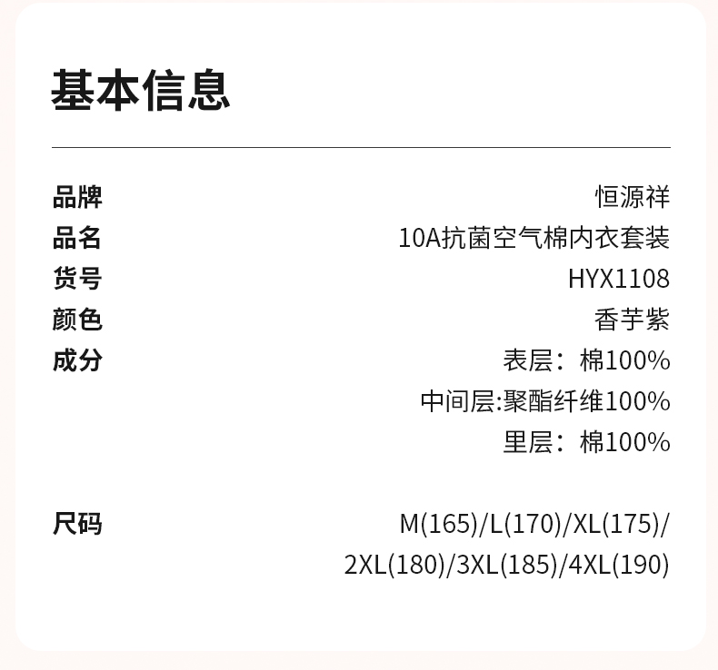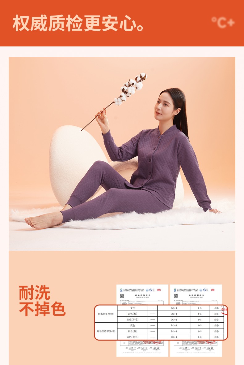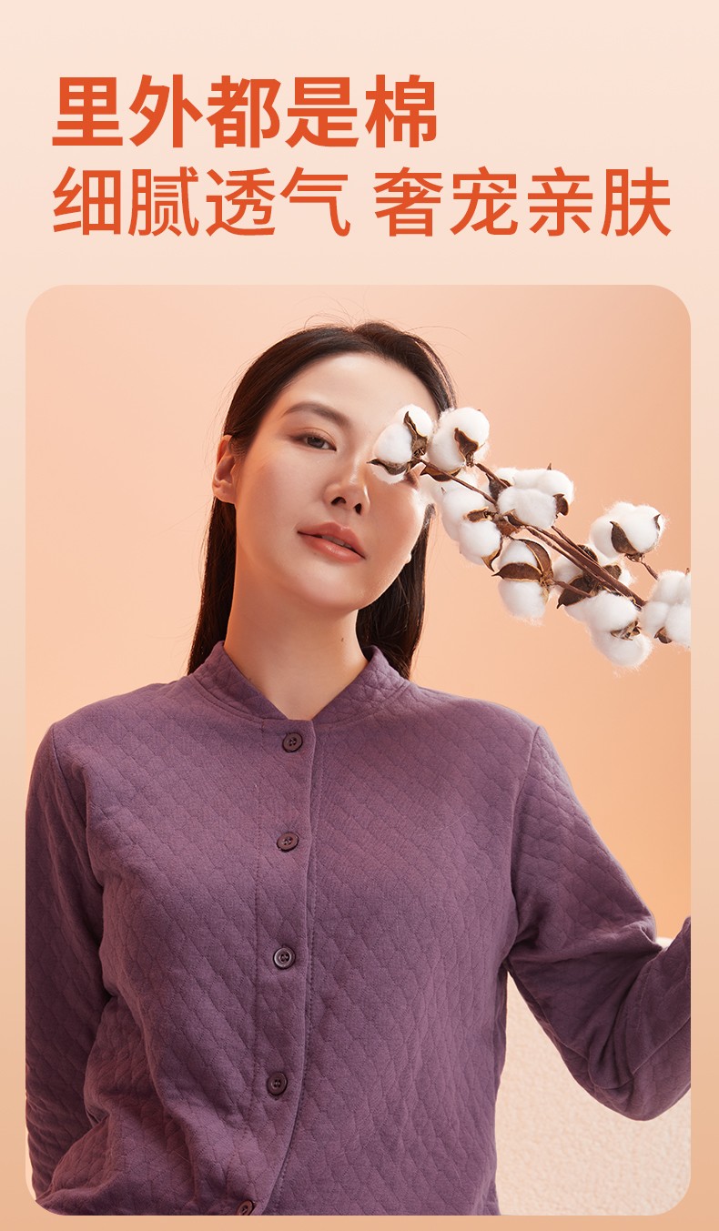 商品名称:(世星阳光)+恒源祥 10A抗菌空气棉内衣套装 HYX1108 规格 165 170 175 180 185 190 女款颜色 香芋紫 下单备注尺码 抗菌保暖 菱形锁线不易跑棉 夹棉更锁温