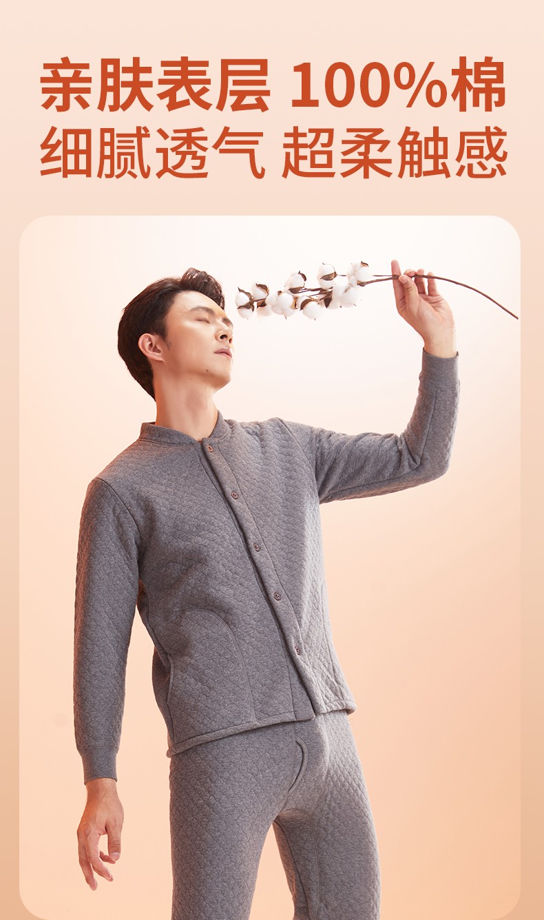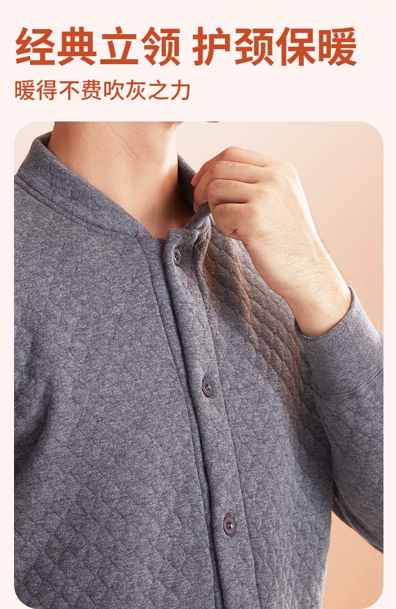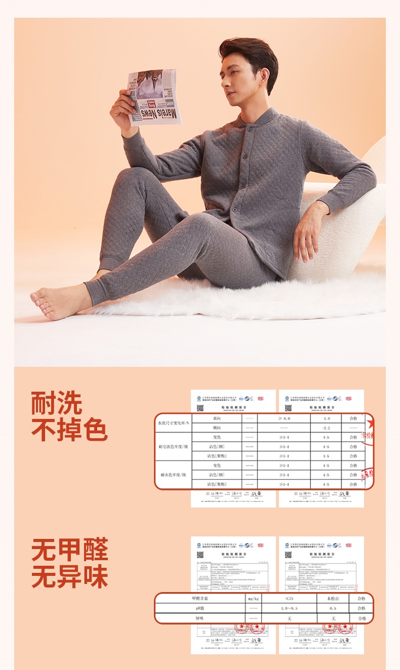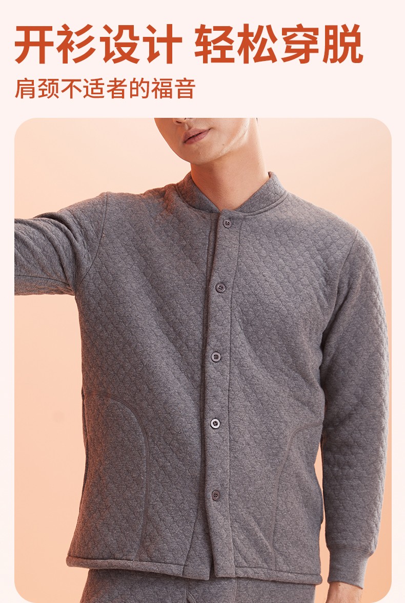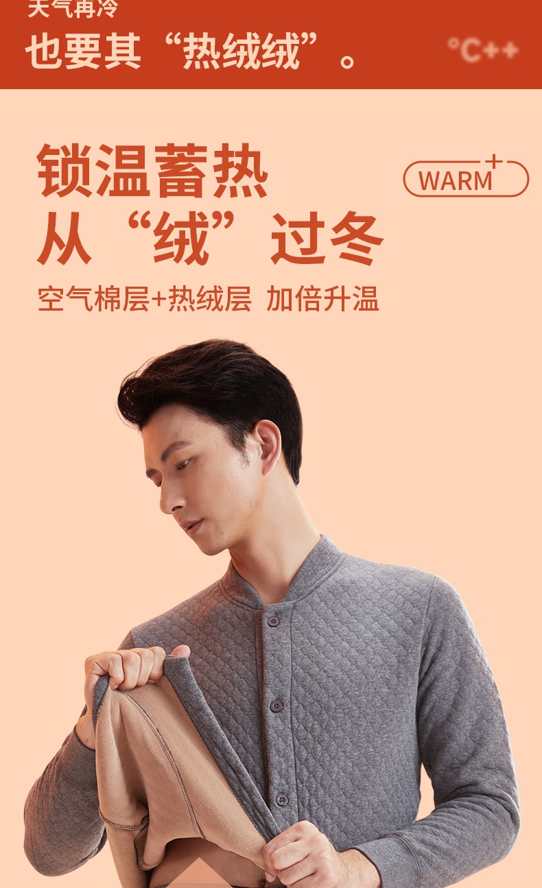 (世星阳光)+恒源祥 10A抗菌空气棉加绒保暖套装 HYX1101 规格 170 175 180 185 190 男款 颜色 深灰 下单备注尺码 抗菌保暖亲肤