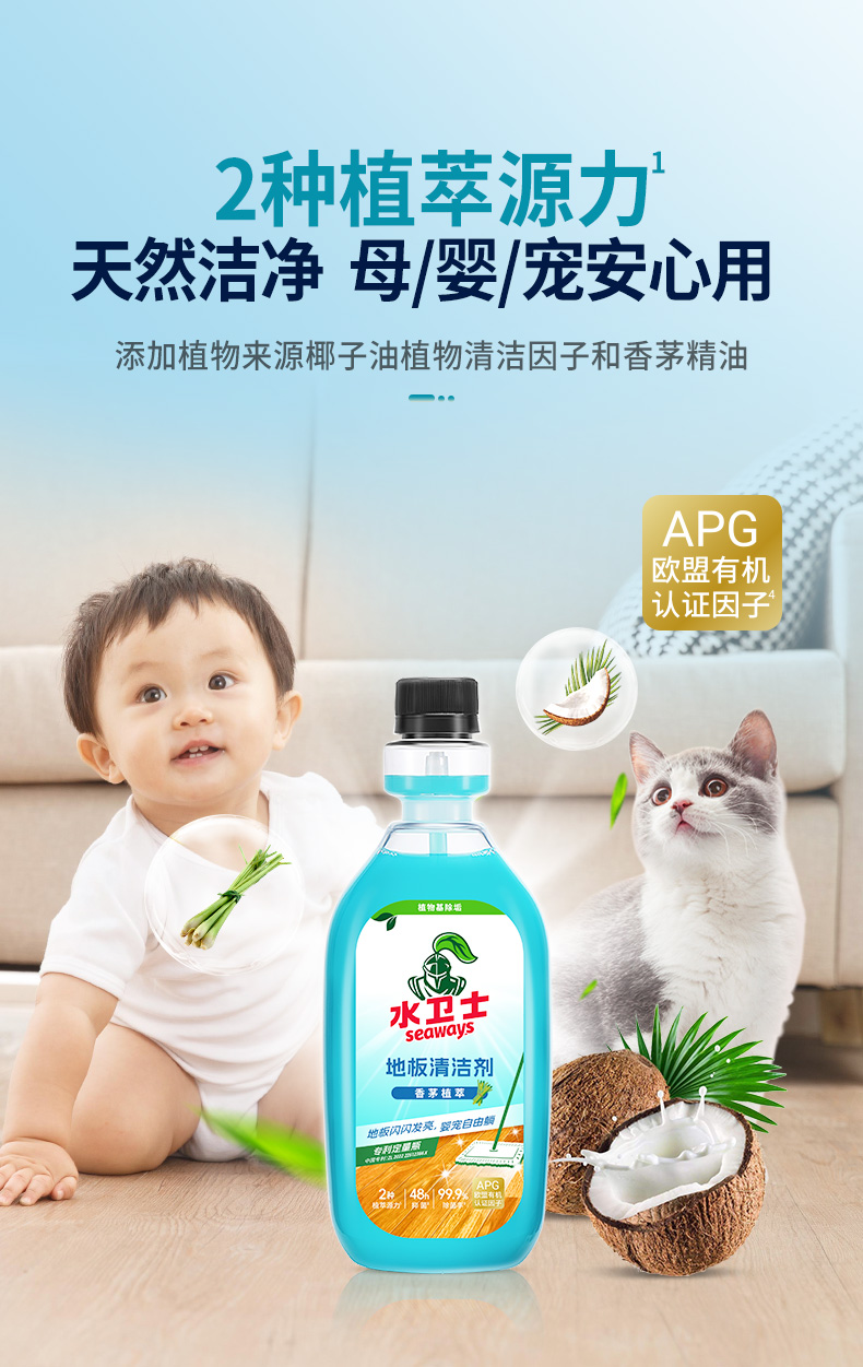 商品名称:(世星阳光) 水卫士 地板清洁剂(香茅)500ml*3瓶 新老包装随机发货 两种植萃源力 天然洁净 母婴宠安心用
