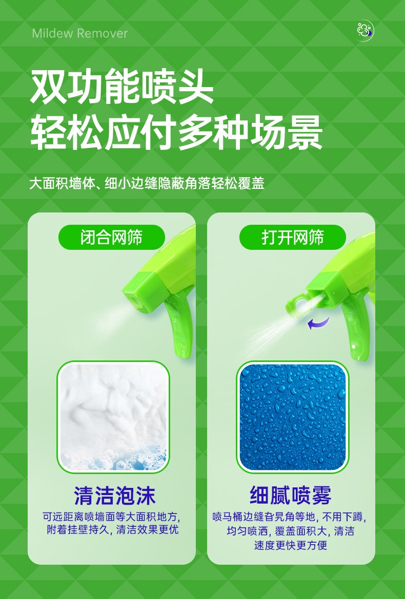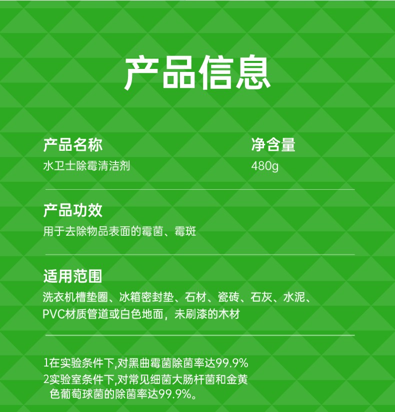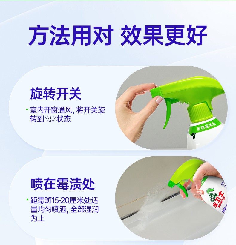 商品名称:(世星阳光) 水卫士 除霉清洁剂 480g*3瓶(喷头*1)瓦解霉斑 一喷轻松初霉