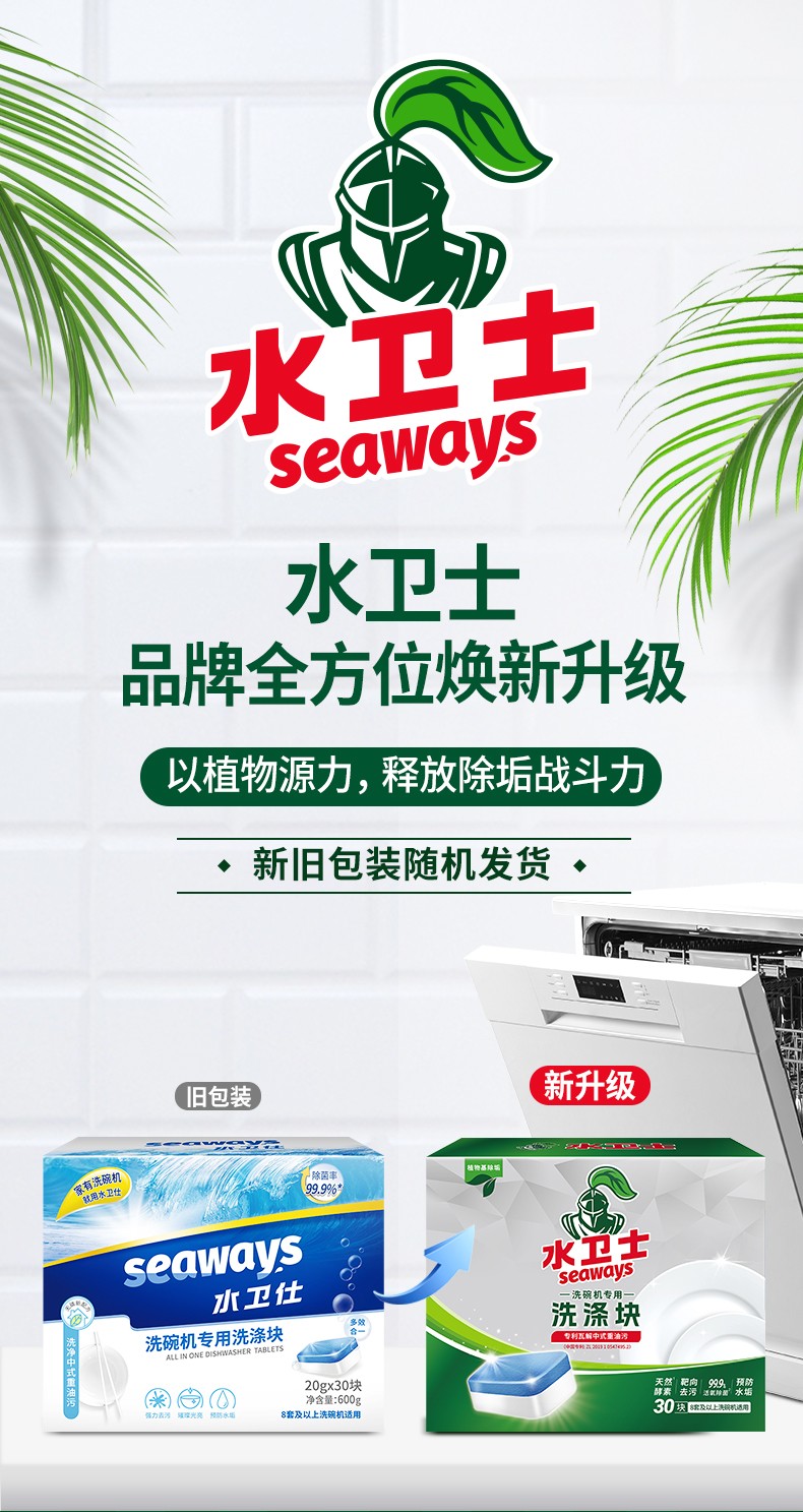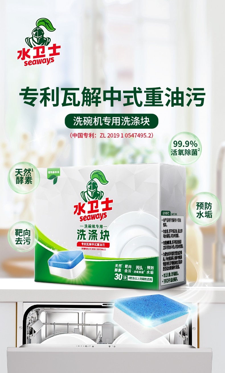 (世星阳光) 水卫士 洗碗机专用洗碗块 20g*30片盒 靶向去污 有效分解蛋白质和淀粉污渍 无磷配方