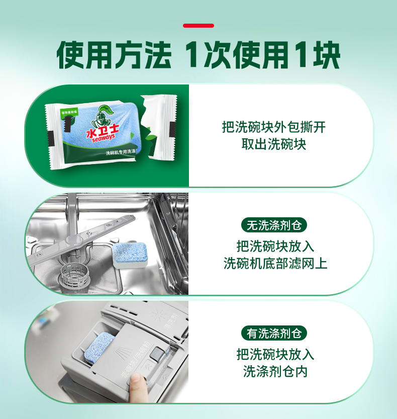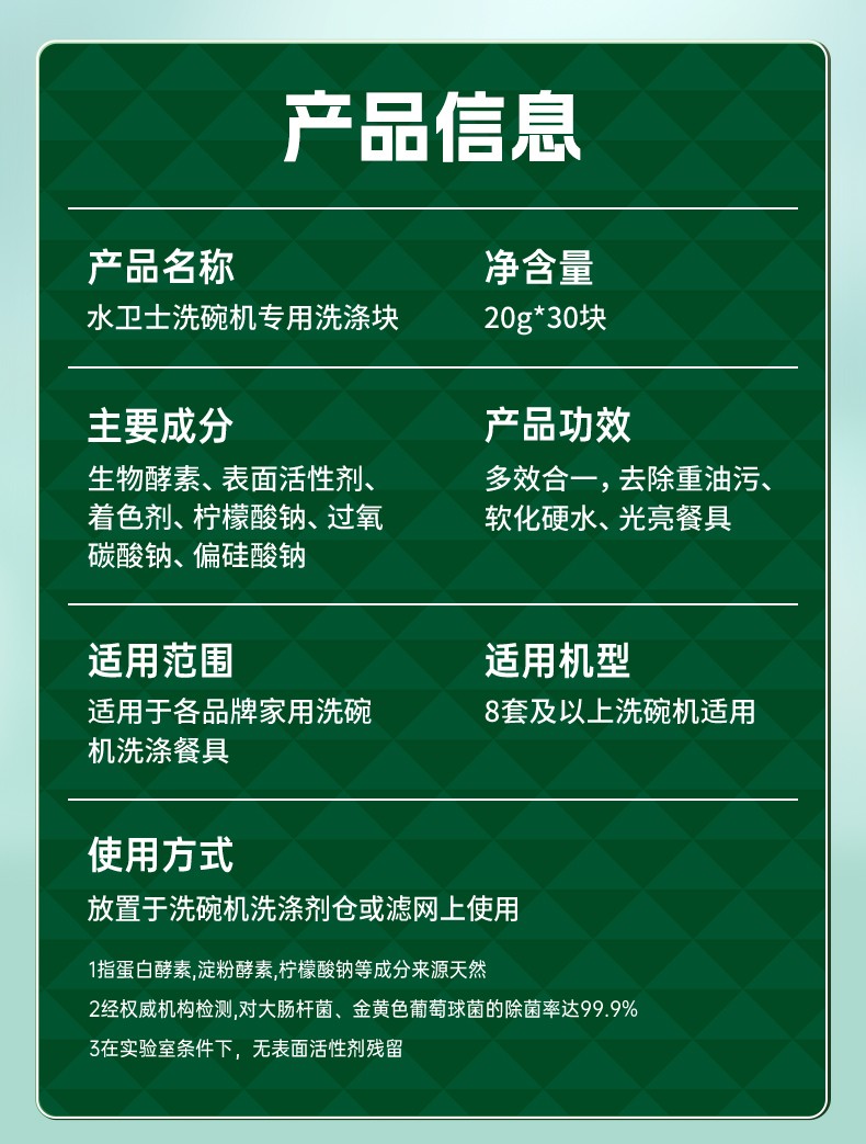 商品名称:(世星阳光) 水卫士 洗碗机专用洗碗块 20g*30片盒 靶向去污 有效分解蛋白质和淀粉污渍 无磷配方