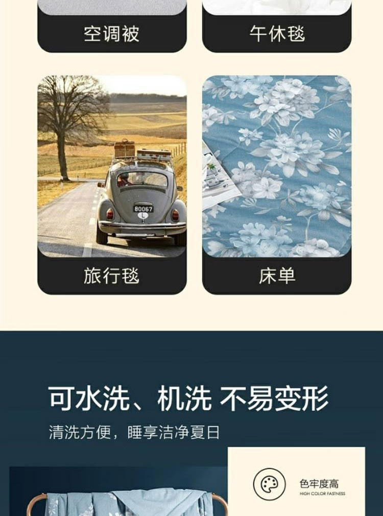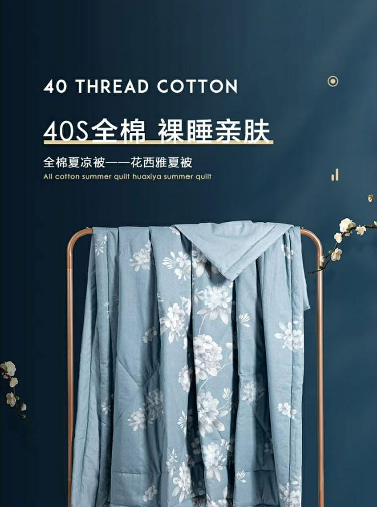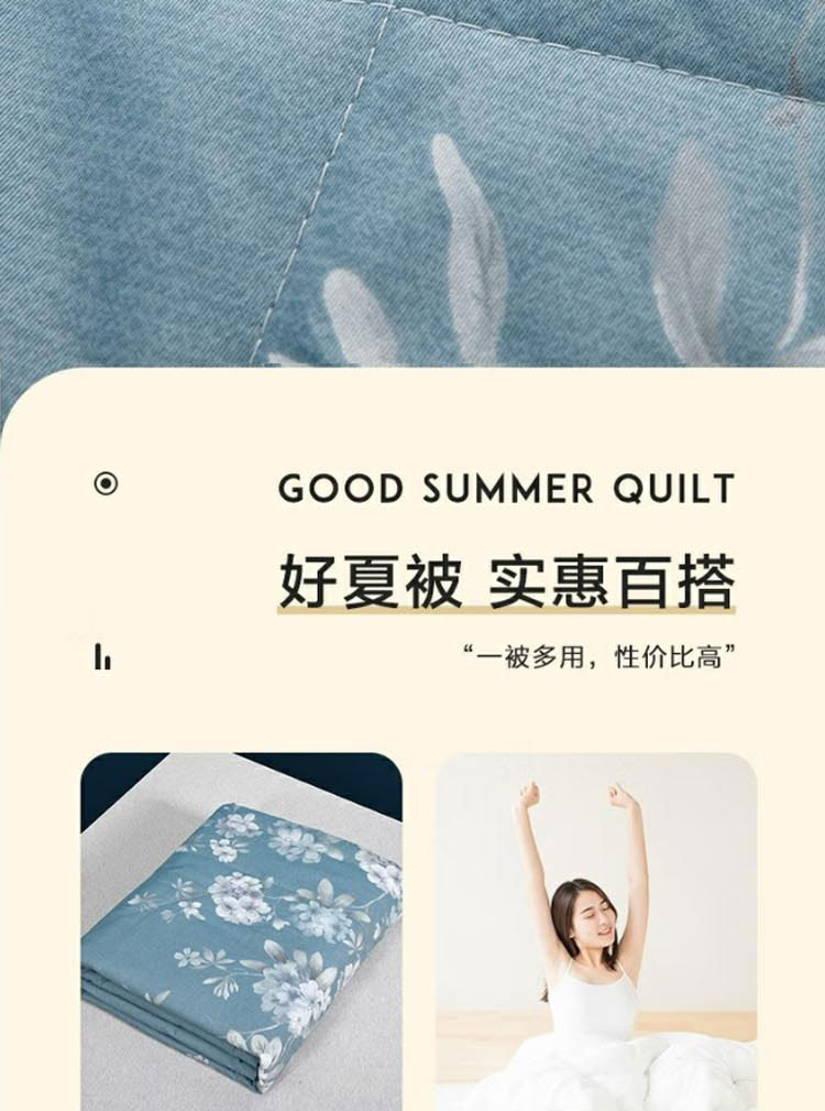 (超运·禾贸)水星家纺 花西雅夏被200*230 夏凉被子七孔纤维夏被子约3.2斤