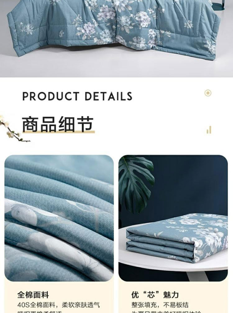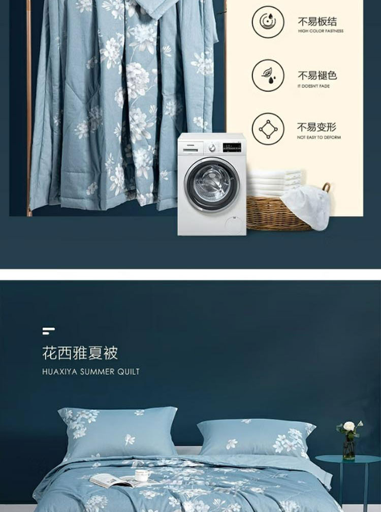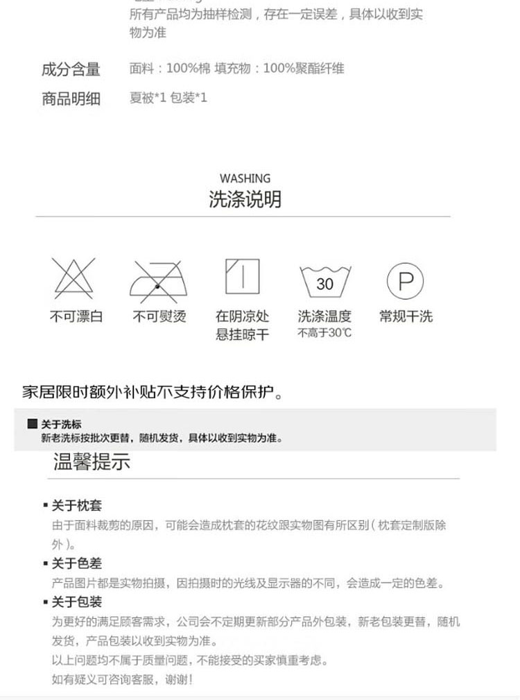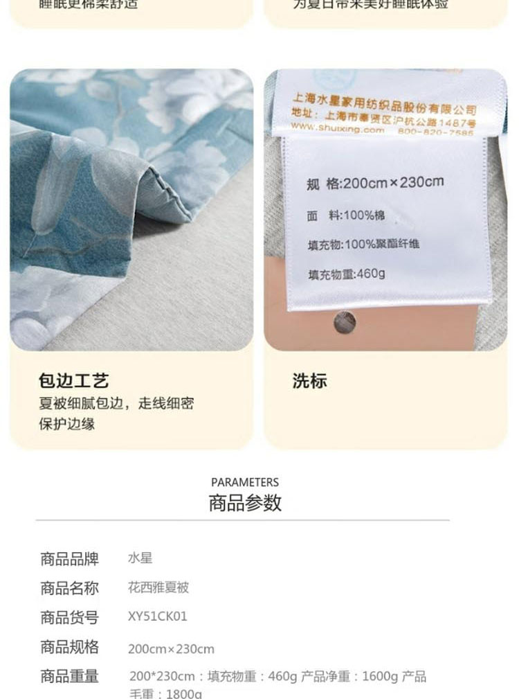 商品名称:(超运·禾贸)水星家纺 花西雅夏被200*230 夏凉被子七孔纤维夏被子约3.2斤