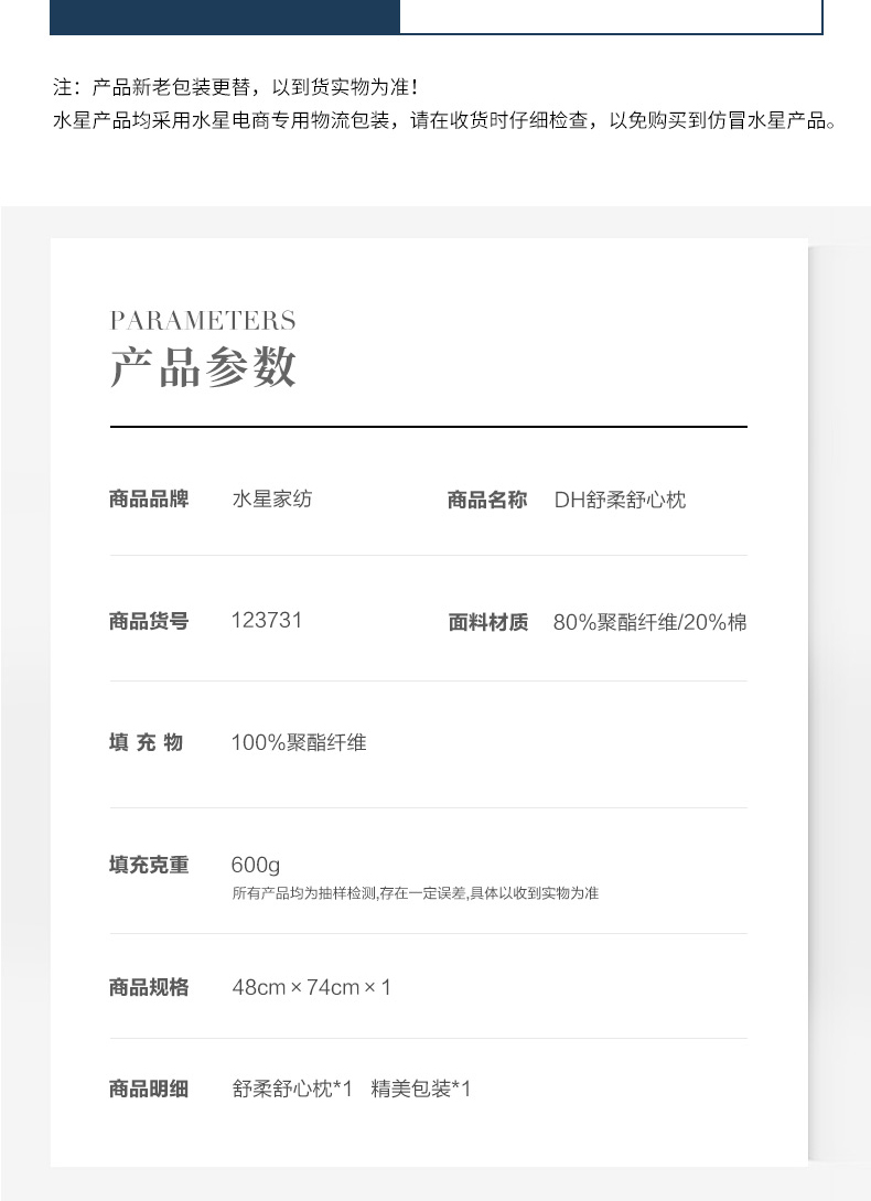 商品名称:(超运·禾贸)水星家纺 舒柔舒心枕 一只装 枕头舒适枕芯枕头床上用品DH【线下专柜同款】 舒柔舒心枕48cm×74cm只 .