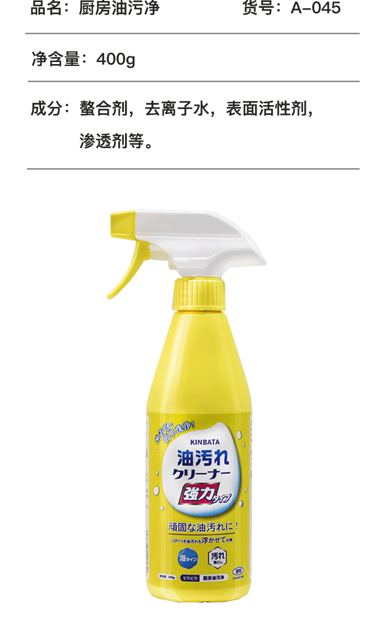 商品名称:(超运·禾贸)KINBATA 厨房油污净400g*2 厨房油污净强力油烟机清洗剂