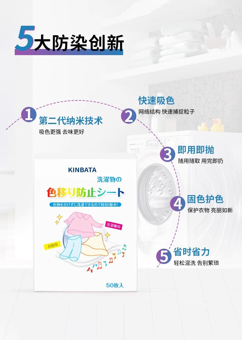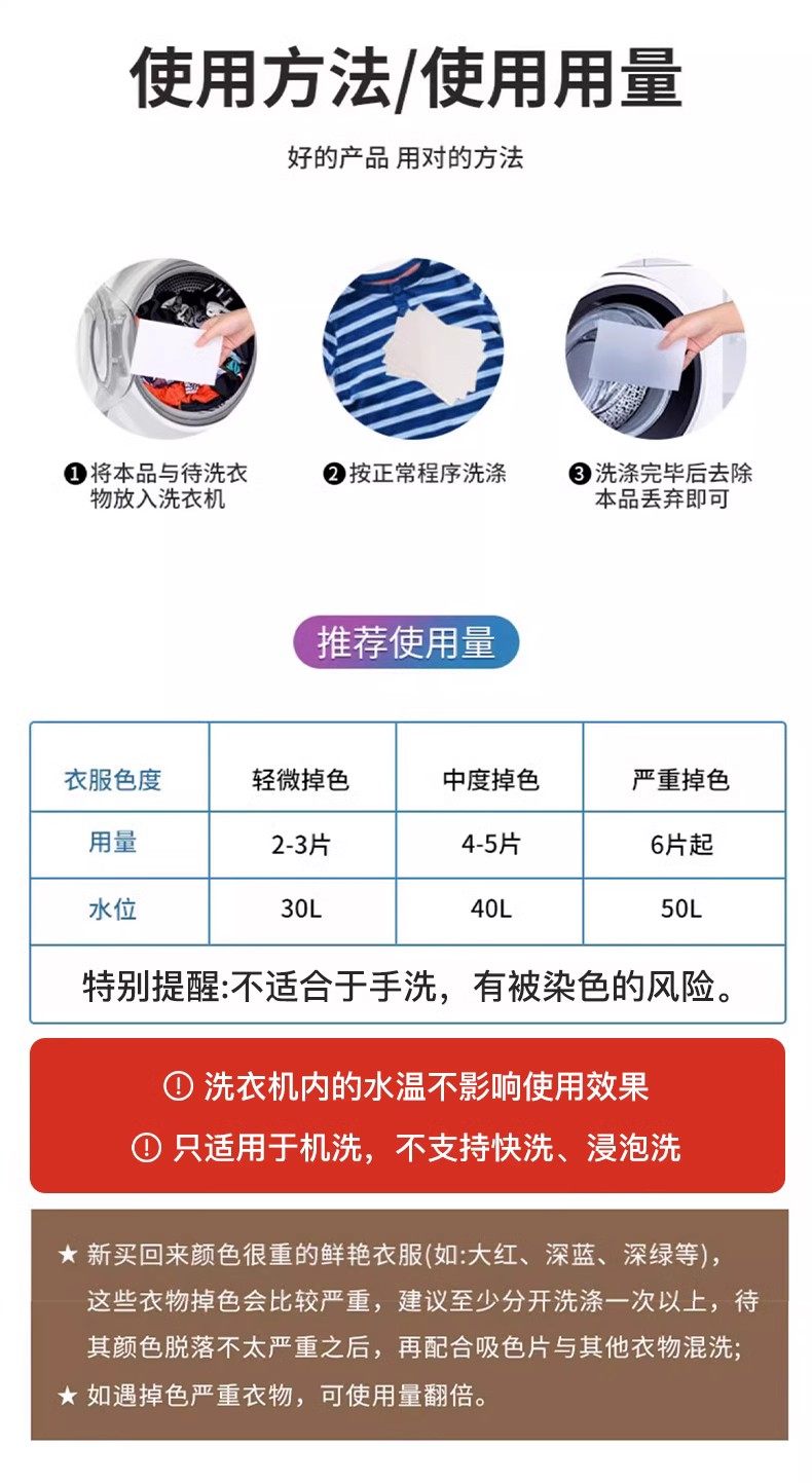 商品名称:(超运·禾贸)KINBATA 吸色片35枚入*3 吸色片防染色洗衣片抑菌防螨色母片