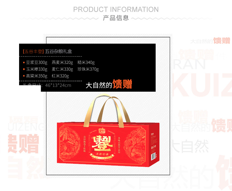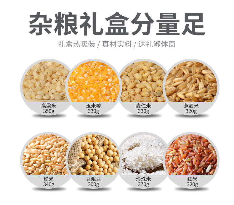 商品名称:(巨邦佑)R+半亩川五谷丰登2660g 燕麦米红米高粱8拼杂粮礼盒