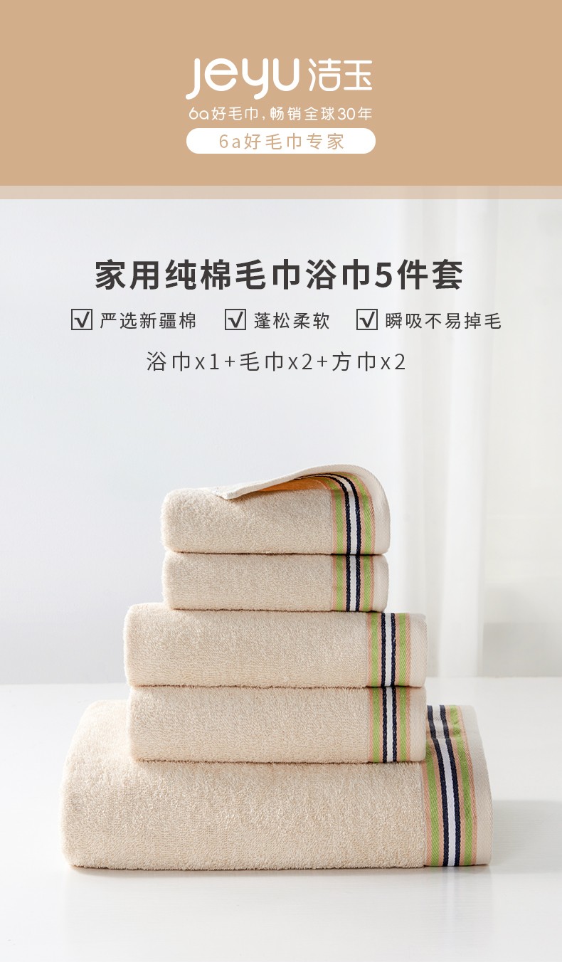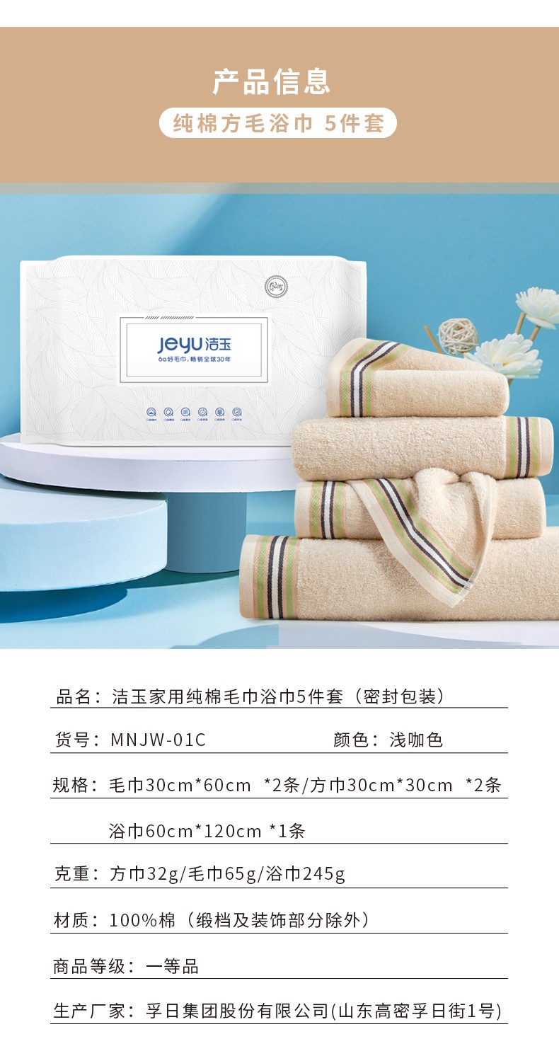 商品名称:(巨邦佑)BJ+洁玉 纯棉毛巾浴巾5件套 MNJW-01C 浅咖色新疆棉毛巾全棉加厚洗脸巾