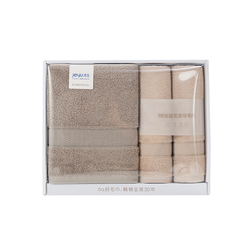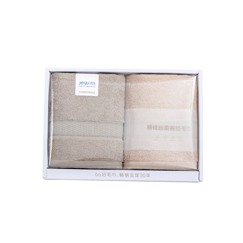 (巨邦佑)BJ+洁玉 超柔赛络毛巾双条装礼盒 TG19-03B 颜色随机加厚密实柔软瞬吸收