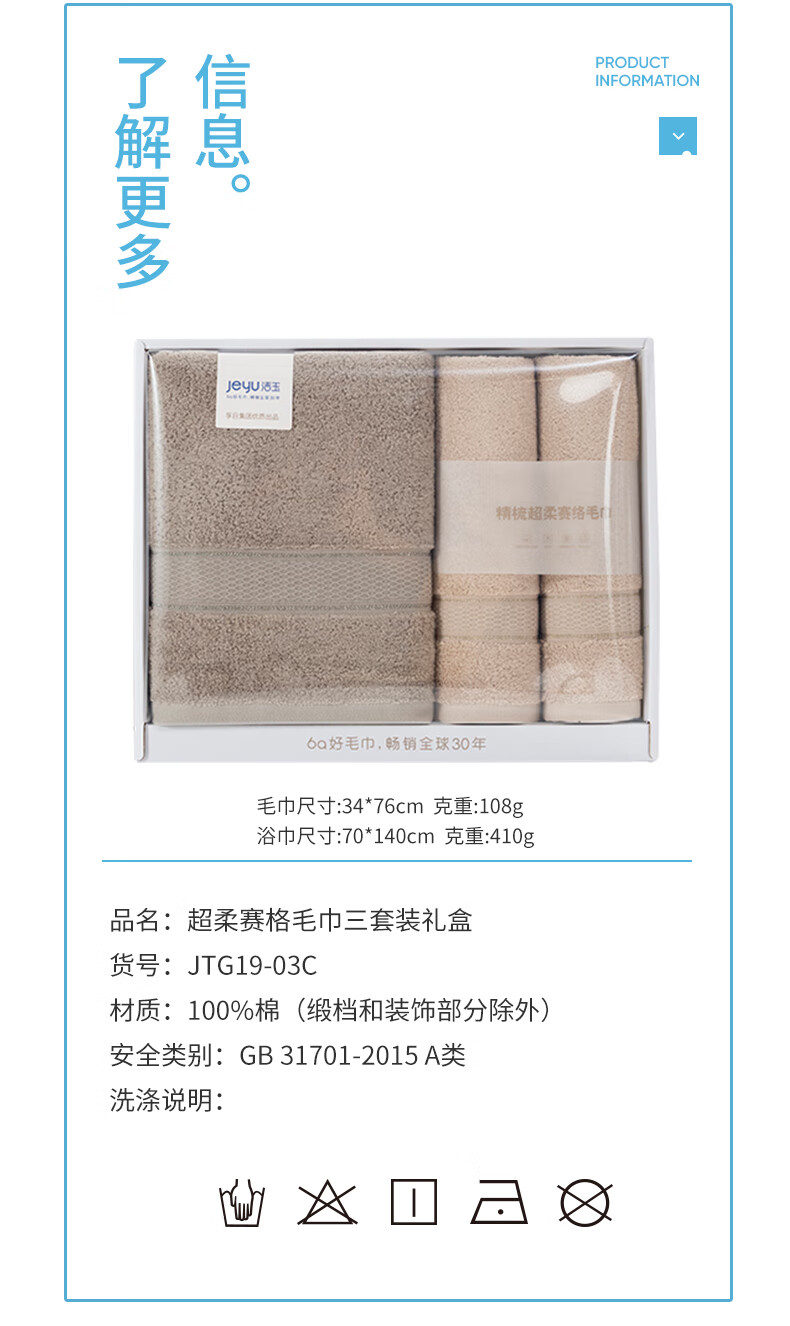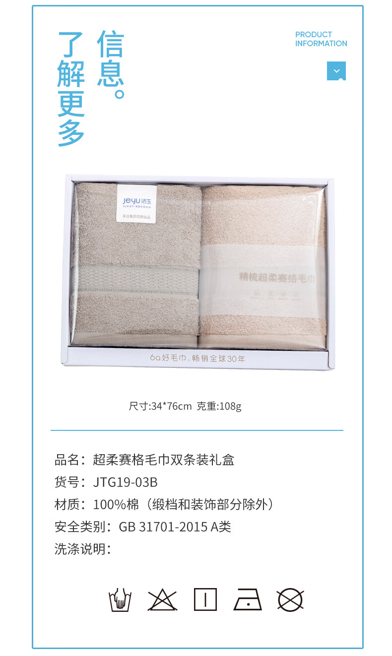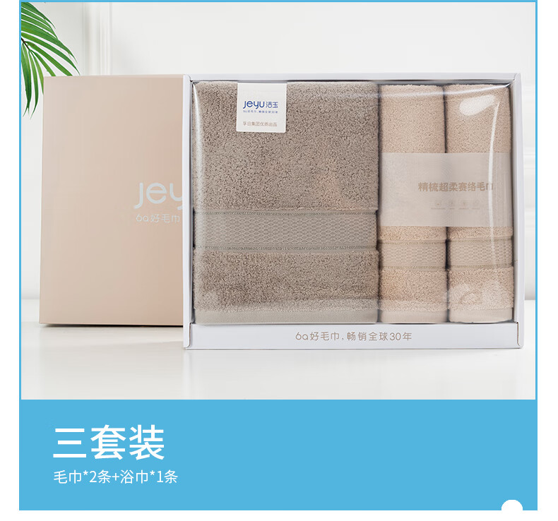 商品名称:(巨邦佑)BJ+洁玉 超柔赛络毛巾双条装礼盒 TG19-03B 颜色随机加厚密实柔软瞬吸收