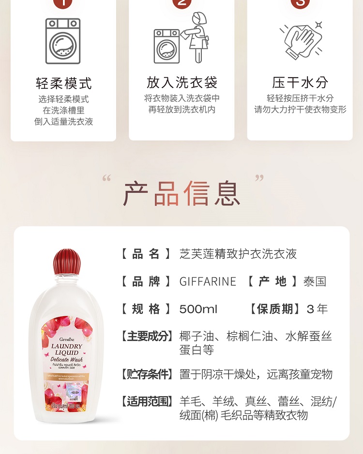商品名称:(世星阳光)芝芙莲 精致护衣(羊毛真丝)洗衣液500ml(送压泵1个+随机小样5ml) 羊绒大衣专用洗涤剂洗护固色蓬松衣物防静电护理