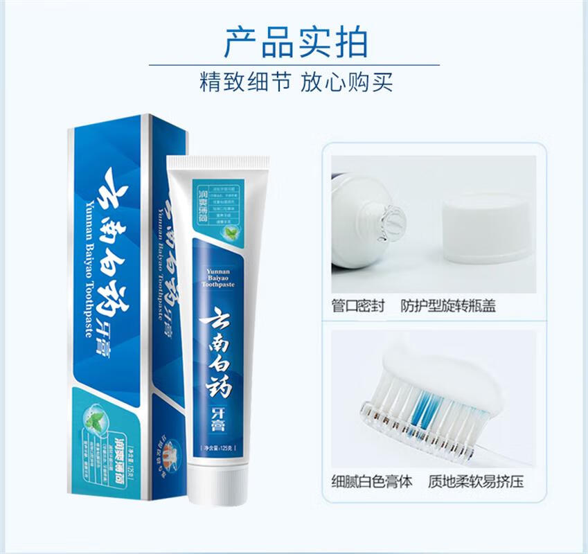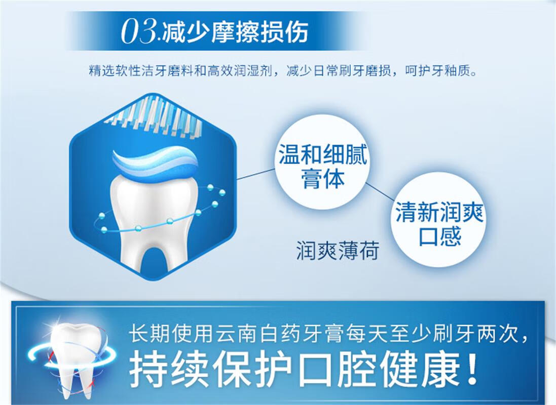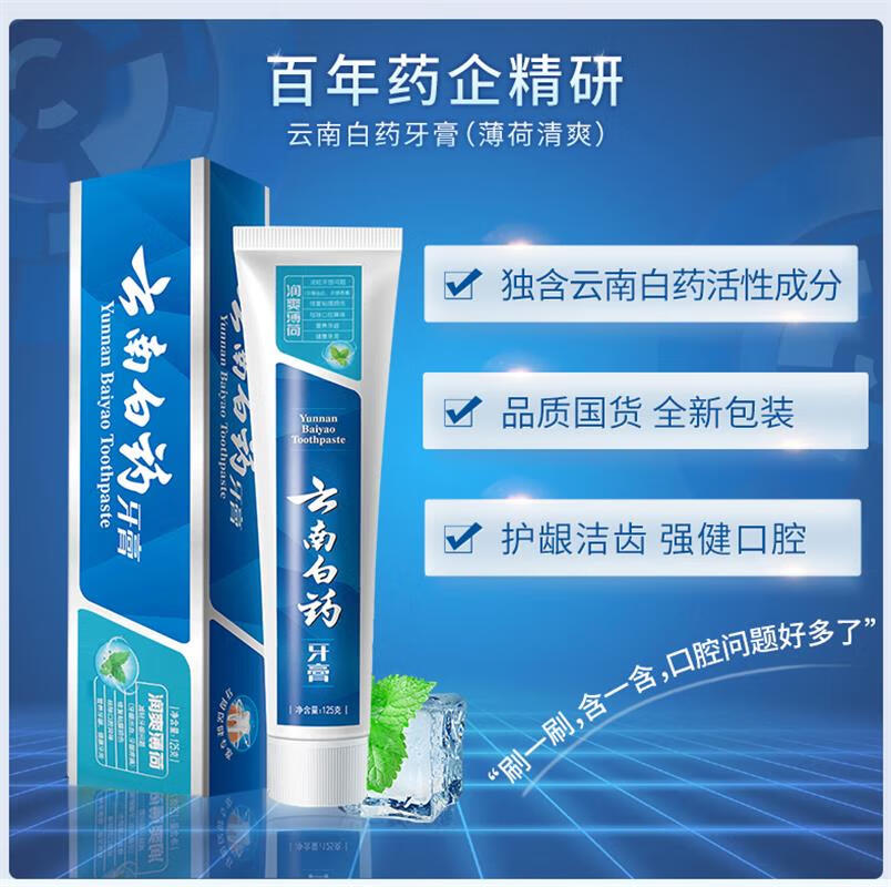 商品名称:(世星阳光)云南白药 润爽薄荷牙膏 125g*3支 口气清新护龈清洁牙齿 润爽薄荷 薄荷持久长效清新缓解异味