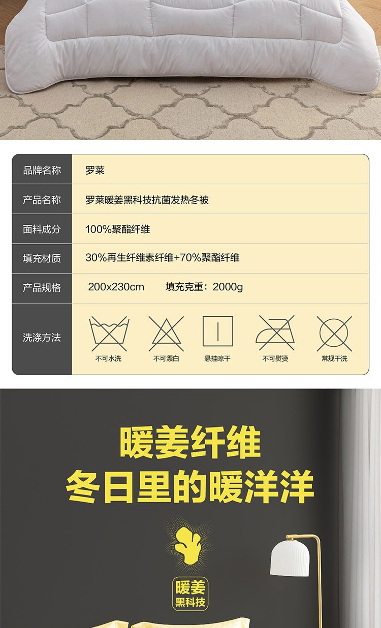商品名称:(康恩)罗莱A类舒芯云柔七孔冬被暖姜黑科技抗菌发热冬被200*230cm