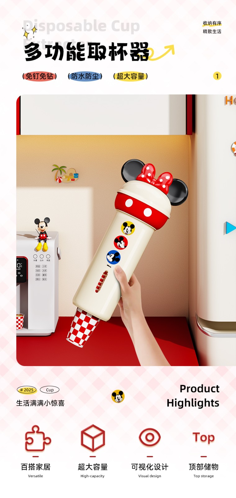 (巨邦佑)BJ+迪士尼取杯器(杯架) 多功能取杯器百搭家居超大容量可视化设计顶部储物